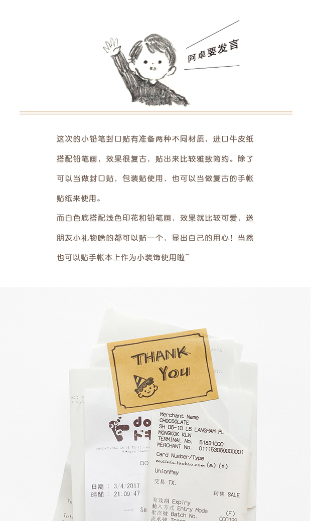 卓大王 小鉛筆封口貼紙